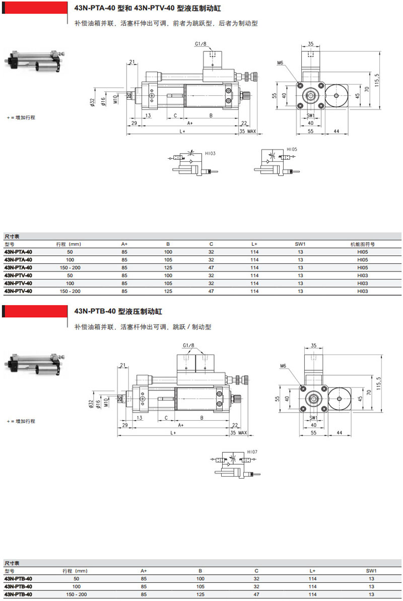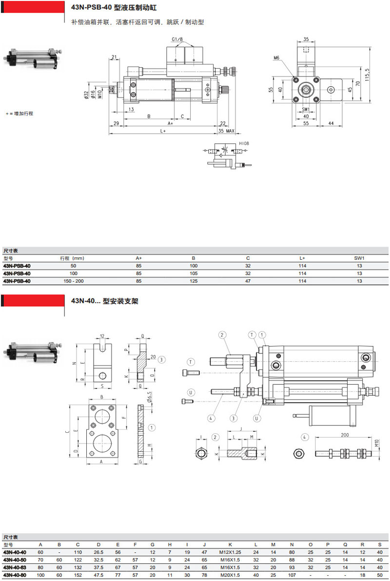 43N-LSA-40-200,43S-LTB-40-200,43N-PSV-40-200,43S-PT0-40-200,camozzi液壓制動缸