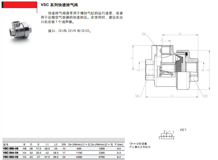 VSC-568-1/8,VSC-544-1/4,VSC-522-1/2,camozzi快速排氣閥