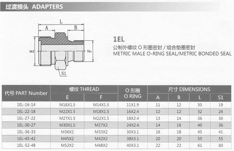 1EL-16-14,1EL-22-18,1EL-27-22,1EL-30-27,1EL-36-33,1EL-45-42,1EL-52-48,過渡接頭