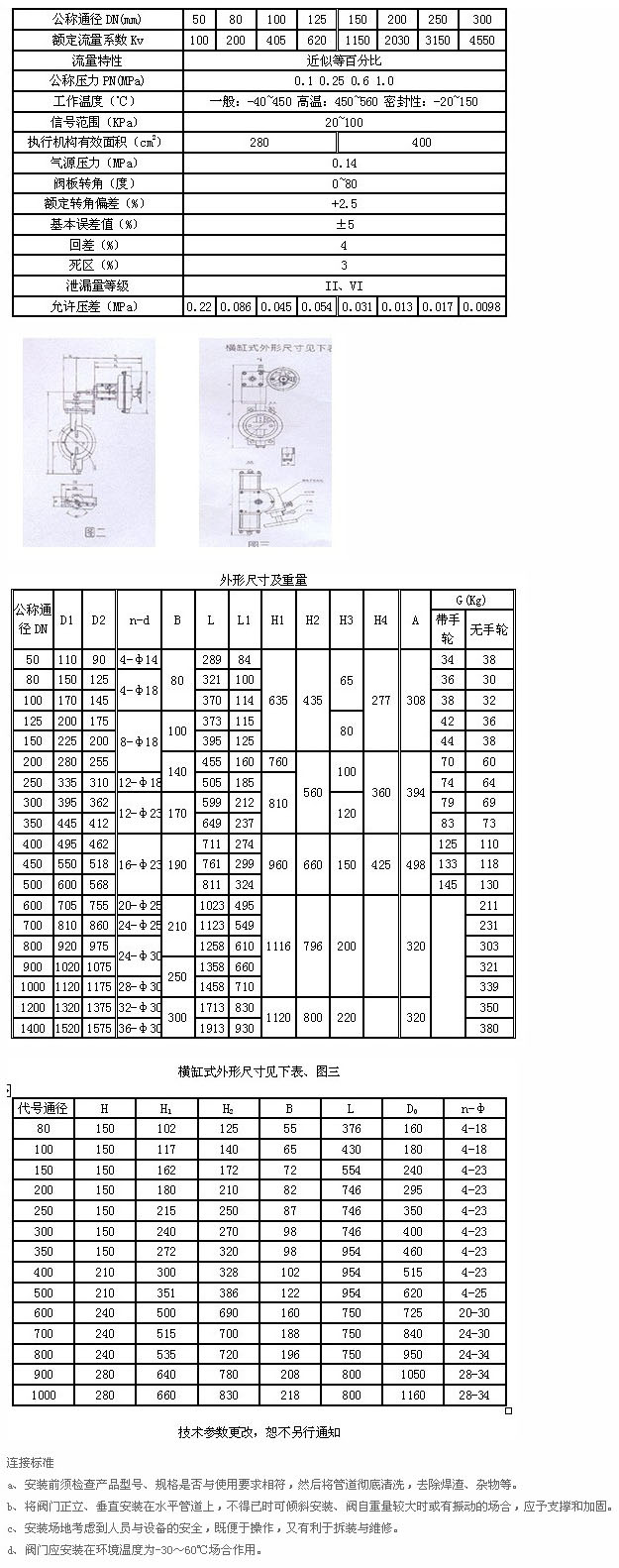 本系列產(chǎn)品有標準型、高溫型及密封型三種。產(chǎn)品公稱壓力等級有0.1、0.25、0.6、1.0MPa,口徑由50mm至1400mm,泄漏量等級有II級和VI級,流量特性為近似等百分比。