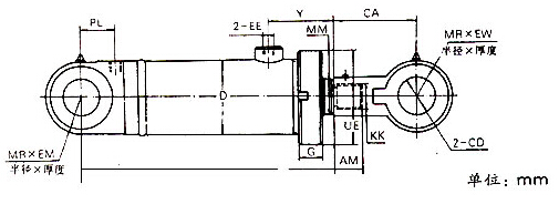 2 –缸頭、缸筒連接方式:1=缸頭耳環(huán)帶襯套;2=缸頭恥環(huán)帶關(guān)節(jié)軸承;3=鉸軸(用于缸徑≥Φ80卡鍵式連接);4=端部法蘭(用于缸徑≥Φ80卡鍵式連接);5=中部法蘭(用于缸徑≥Φ80卡鍵式連接)