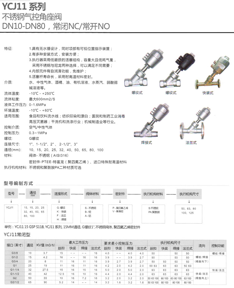 YCJ1110,YCJ1115,YCJ1120,YCJ1125,YCJ1132,YCJ1140,YCJ1150,YCJ1165,YCJ1180,YCJ11100,不銹鋼氣控角座閥