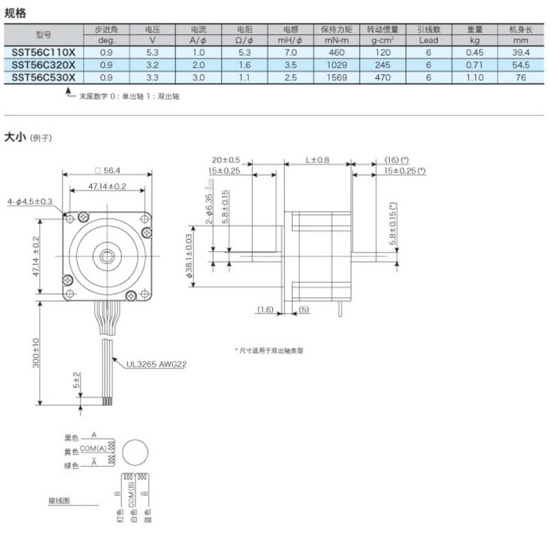 SST56C110X,SST56C320X,SST56C530X,兩相混合步進(jìn)馬達(dá)