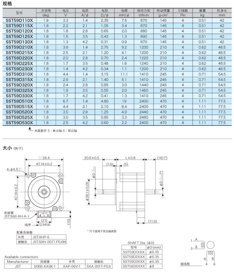 SST59D110X,SST59D115X,SST59D120X,SST59D125X,SST59D130X,兩相混合步進馬達