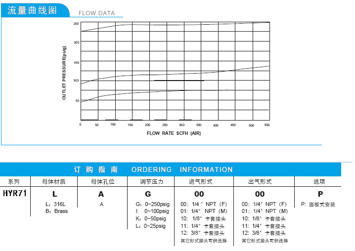最大調(diào)節(jié)壓力:250 Psig