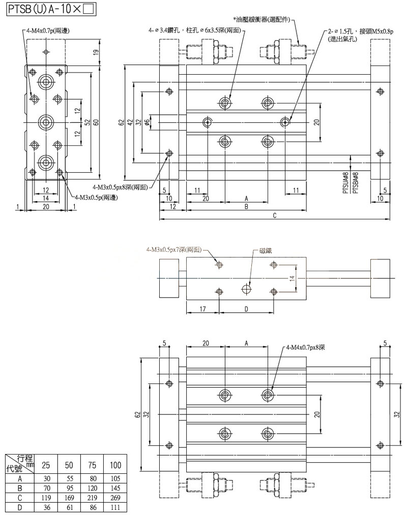 PTSBA-10,PTSBA-20,PTSBA-32,PTSUA-10,PTSUA-20,PTSUA-32,panix導(dǎo)桿滑塊氣缸