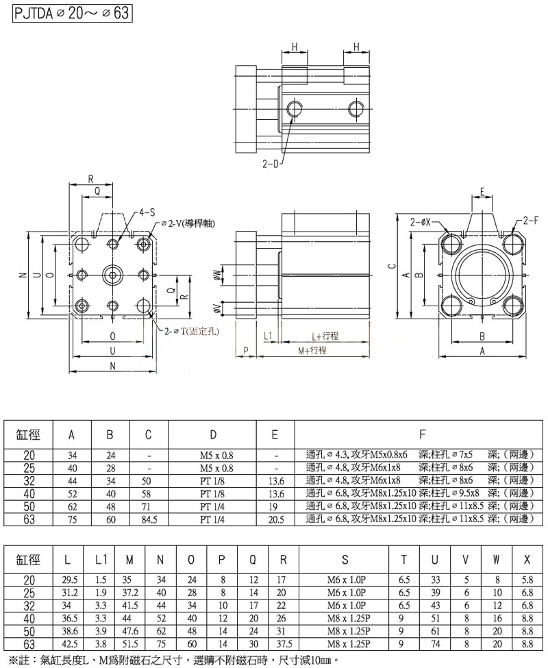PJTDA-25,PJTDA-32,PJTDA-40,PJTDA-50,PJTDA-63,panix滑塊治具缸