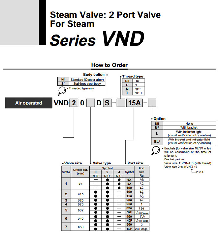 VND102D-6A,VND104D-6A,VND200D-10A,VND300D-20A,VND400D-25A,VND500D-32A,VND600D-40A,VND700D-50A,SMC蒸汽用2通閥