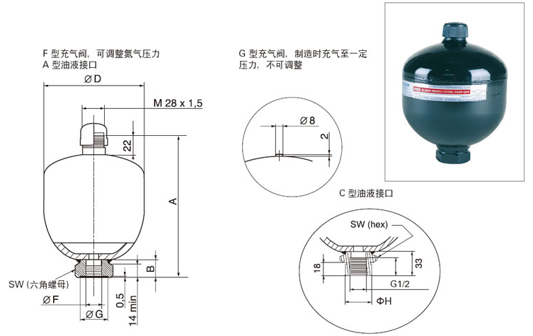 ELM0.075-250/00/AF,ELM0.16-250/00/AF,ELM0.32-210/00/AF,隔膜式蓄能器