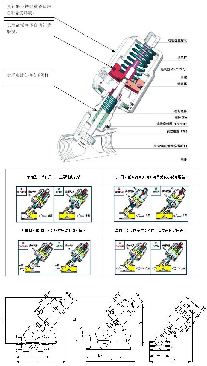 ②工作壓力與執(zhí)行器的大小配置、單作用、雙作用、以及正、反流向安裝、常開、常閉等因素相關(guān),更多資料請向我們索取。