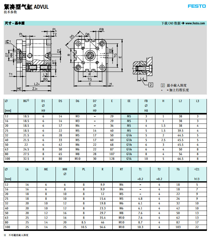 ADVUL-12,ADVUL-16,ADVUL-20,ADVUL-25,ADVUL-32,ADVUL-40,festo緊湊型氣缸