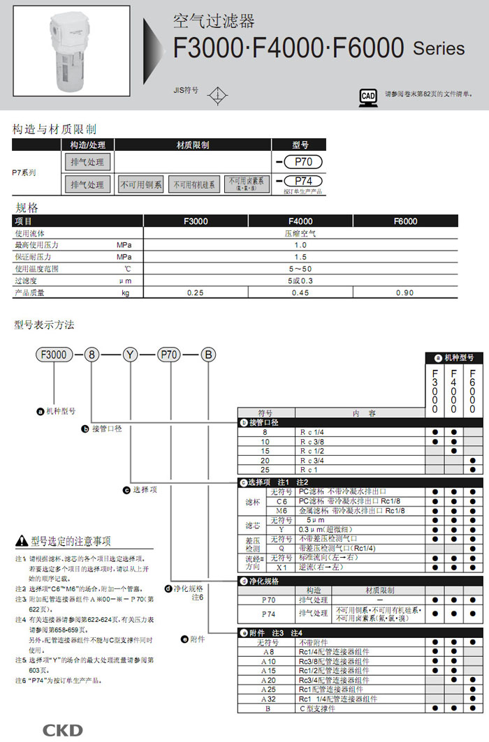 F3000-8,F3000-10,F4000-8,F4000-10,F4000-15,F6000-20,F6000-25,CKD空氣過濾器