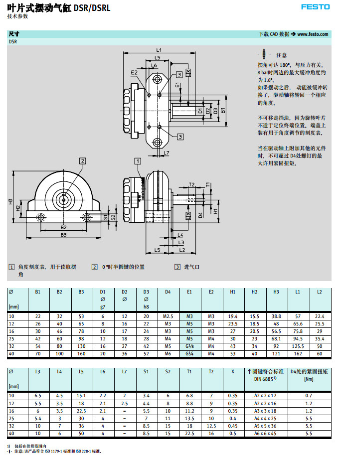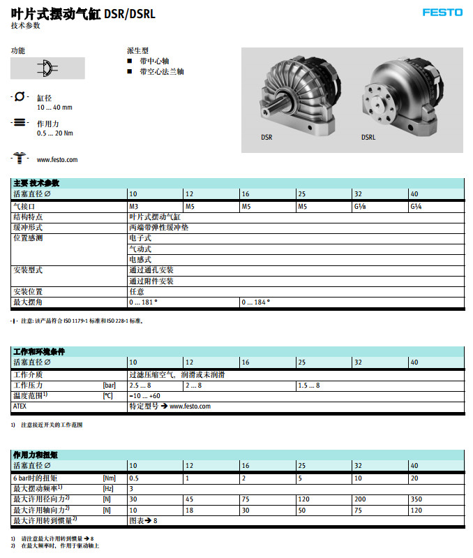 DSRL-10,DSRL-12,DSRL-16,DSR-25,DSR-32,DSR-40,festo葉片式擺動氣缸
