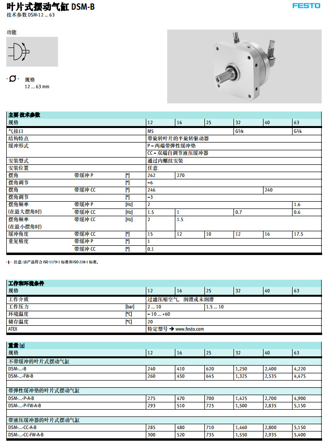 DSM-12,DSM-16,DSM-25,DSM-32,DSM-40,DSM-63,festo葉片式擺動氣缸