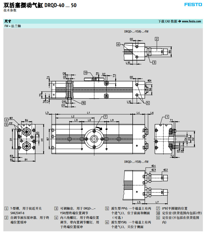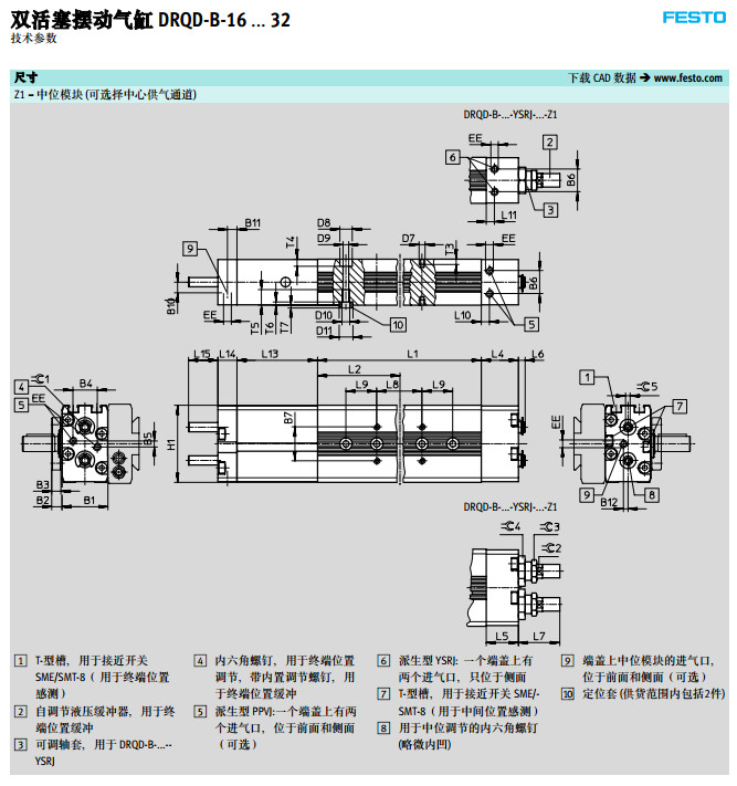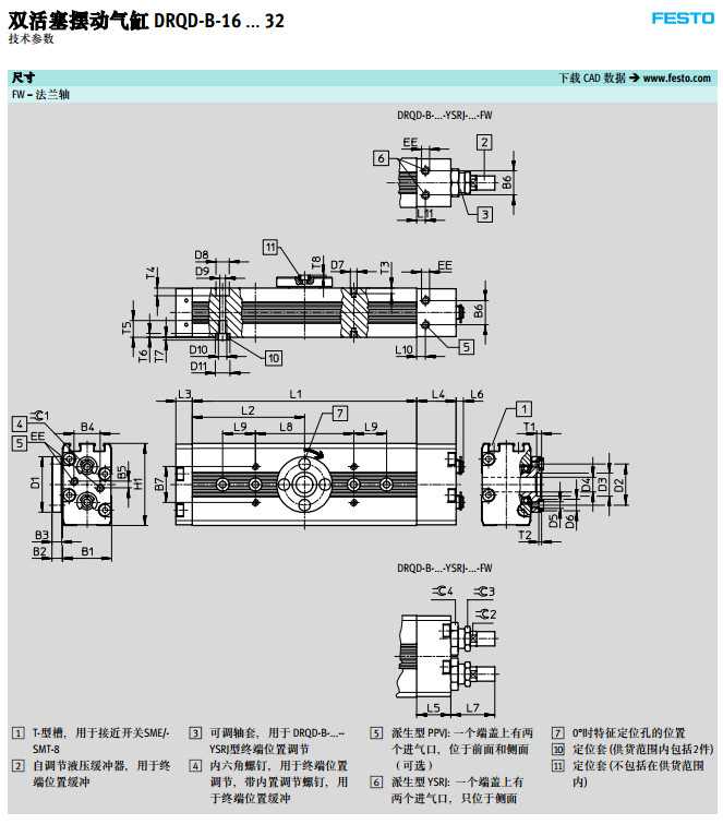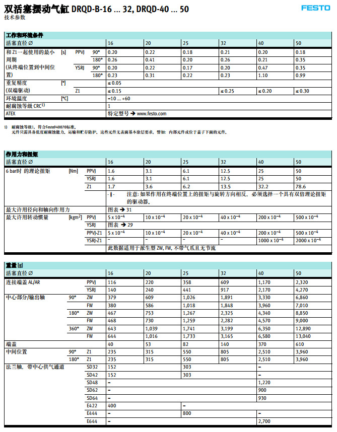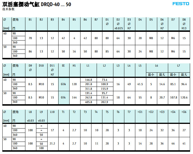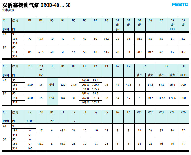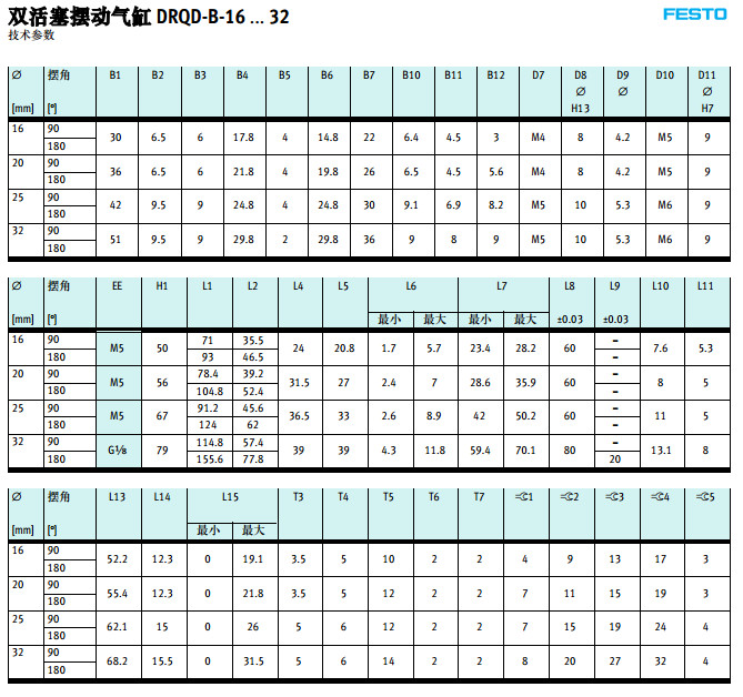 DRQD-B-16,DRQD-B-20,DRQD-B-25,DRQD-B-32,DRQD-B-40,DRQD-B-50,festo擺動氣缸
