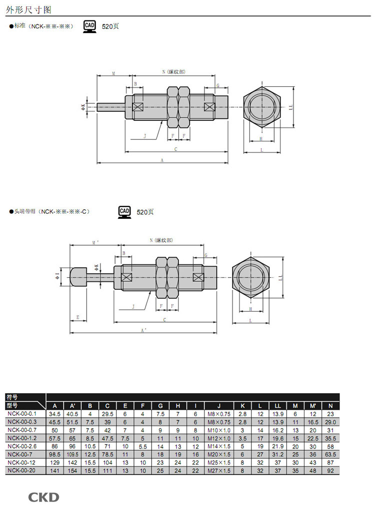 NCK-FA-0.1,NCK-FA-0.3,NCK-FA-0.7,NCK-FA-1.2,NCK-FA-2.6,NCK-FA-7,NCK-FA-12,NCK-FA-20,CKD緩沖器
