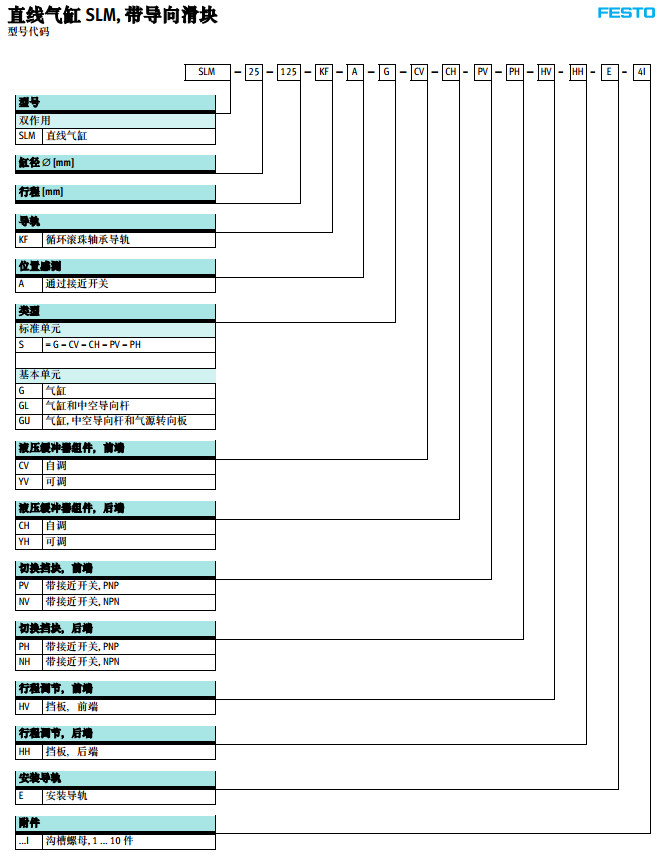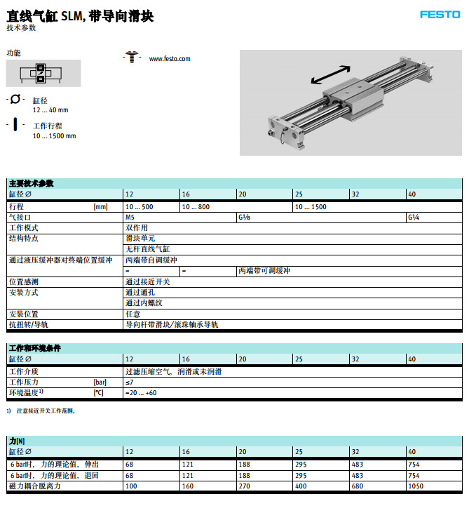 SLM-12,SLM-16,SLM-20,SLM-25,SLM-32,SLM-40,festo直線氣缸