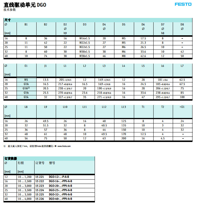 DGO-12,DGO-16,DGO-20,DGO-25,DGO-32,DGO-40,festo直線驅動單元