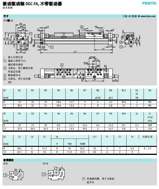 DGC-8-500-FA,DGC-12-500-FA,DGC-25-500-FA,DGC-32-500-FA,festo無(wú)桿氣缸