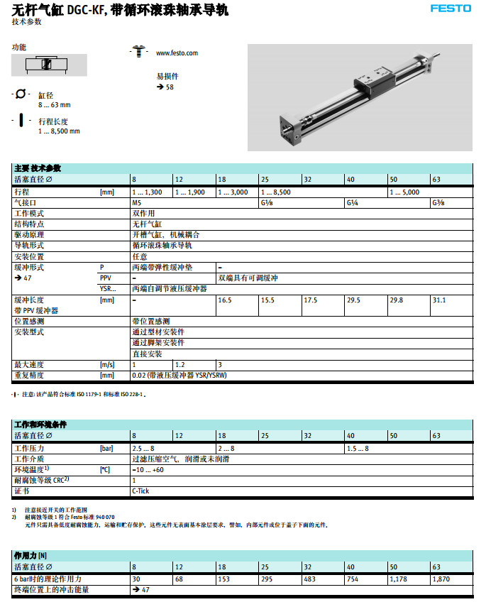 DGC-8-1000-KF,DGC-12-1000-KF,DGC-25-1000-KF,DGC-32-1000-KF,festo無桿氣缸