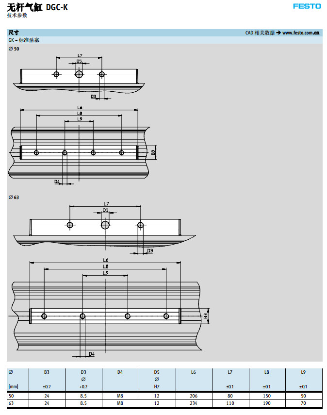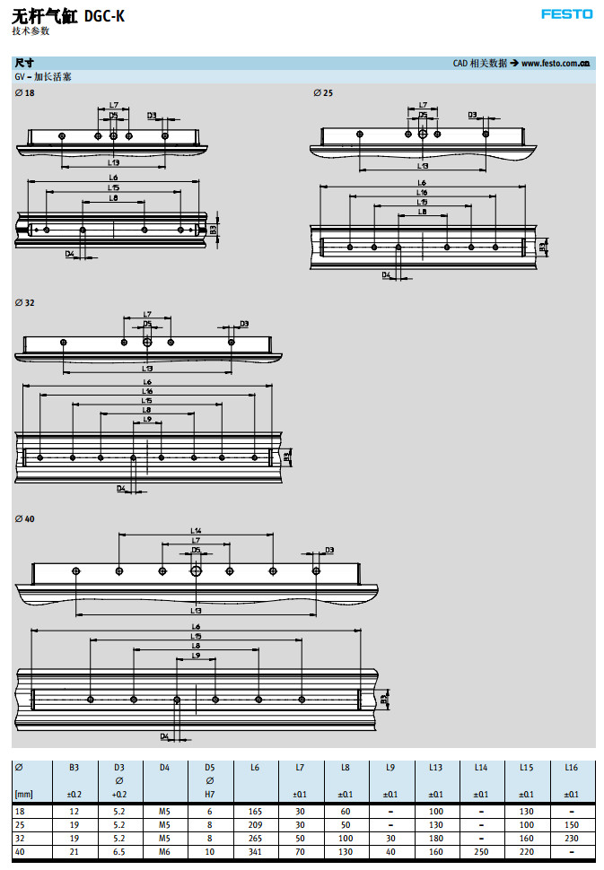 DGC-K-18,DGC-K-25,DGC-K-32,DGC-K-40,DGC-K-50,DGC-K-63,DGC-K-80,festo無桿氣缸