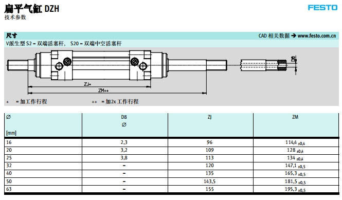 DZH-16,DZH-20,DZH-25,DZH-32,DZH-40,DZH-50,DZH-63,festo扁平氣缸