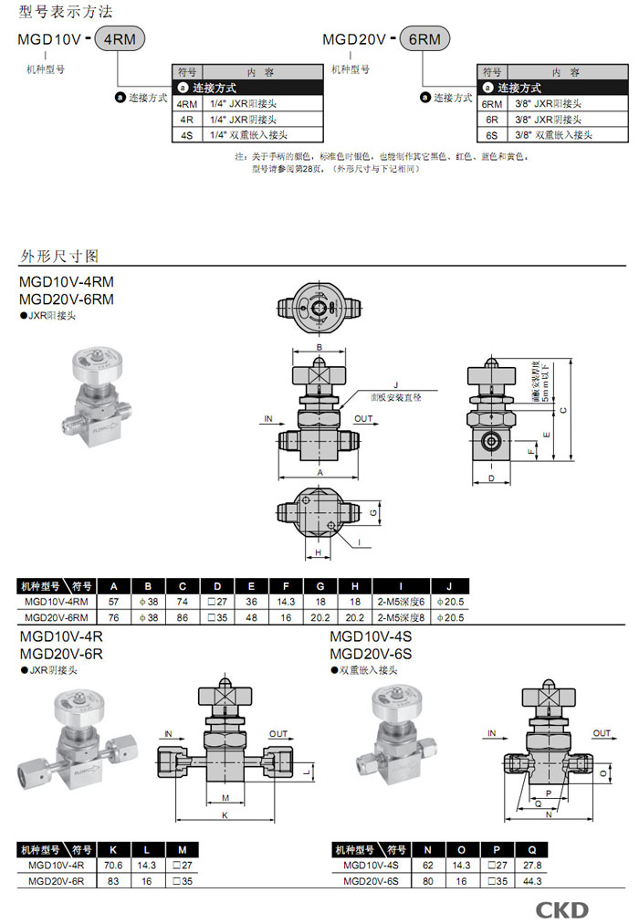 MGD10V-4RM,MGD10V-4R,MGD10V-4RS,MGD20V-6RM,MGD20V-6R,MGD20V-6RS,CKD手動閥