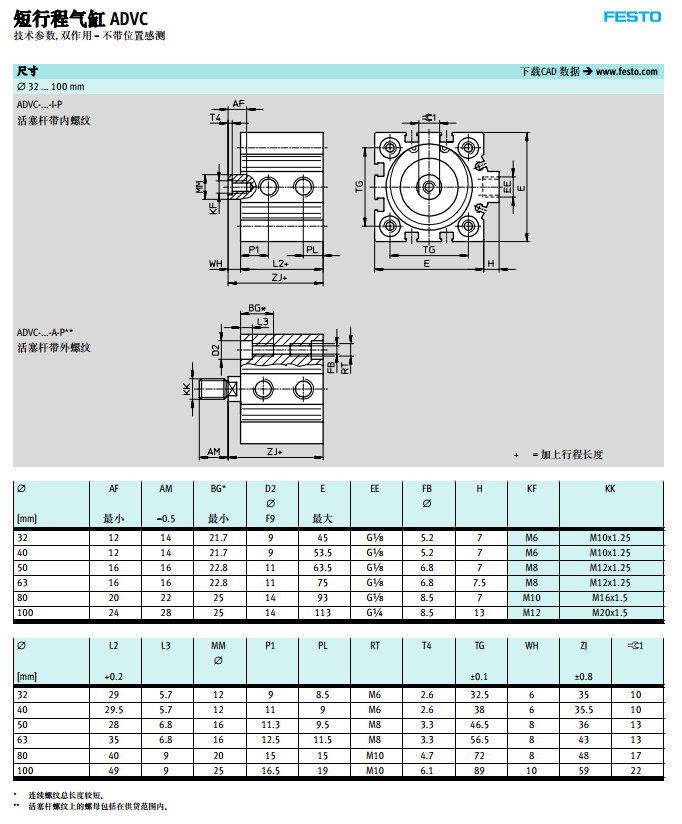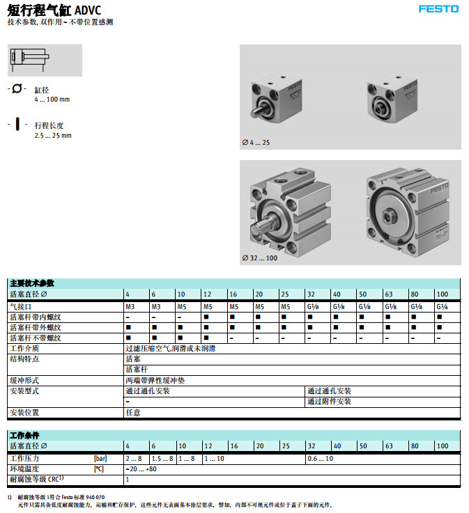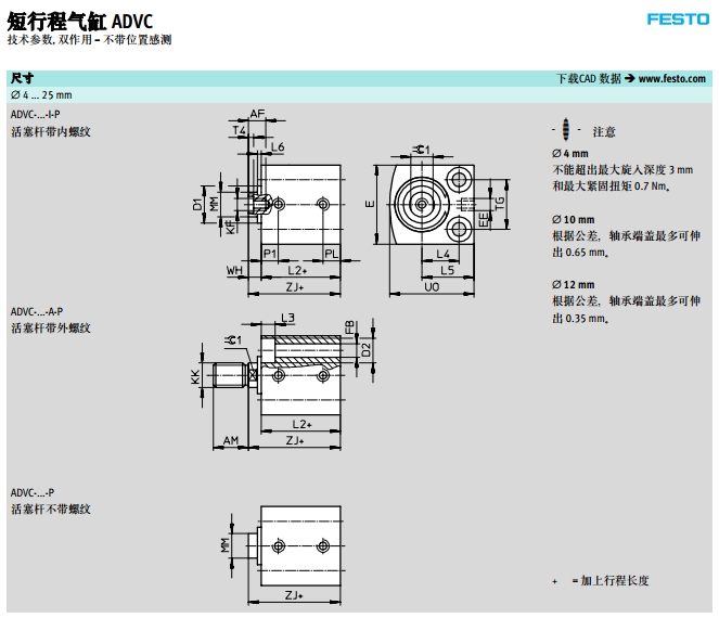 ADVC-6,ADVC-10,ADVC-25,ADVC-32,ADVC-40,ADVC-50,festo短行程氣缸