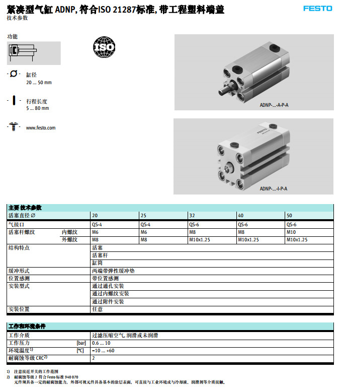 ADNP-20,ADNP-25,ADNP-32,ADNP-40,ADNP-50,festo緊湊型氣缸