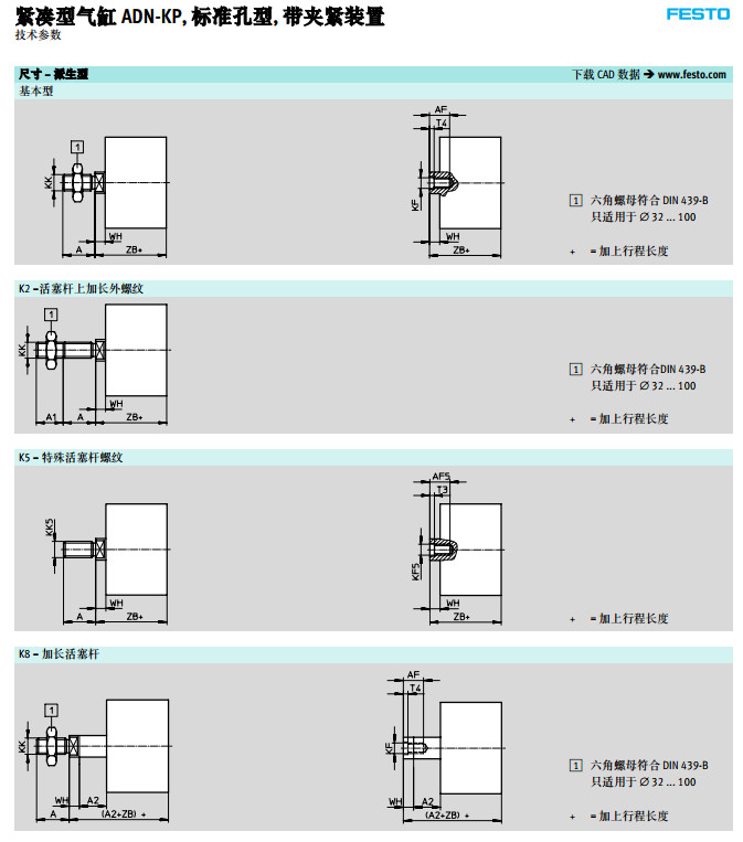 ADN-25-50-KP,ADN-32-50-KP,ADN-40-50-KP,ADN-32-50-KP,festo緊湊型氣缸