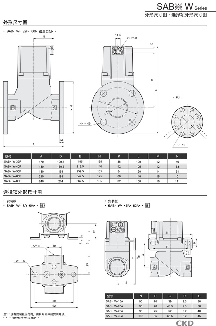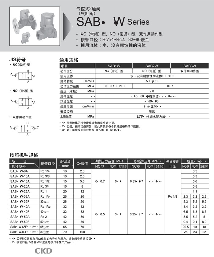 SAB1W-50,SAB2W-8,SAB2W-10,SAB2W-15,SAB2W-20,SAB2W-25,SAB2W-65,SAB2W-80,CKD氣控式2通閥