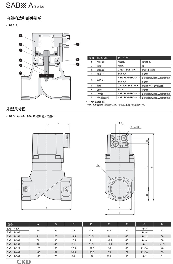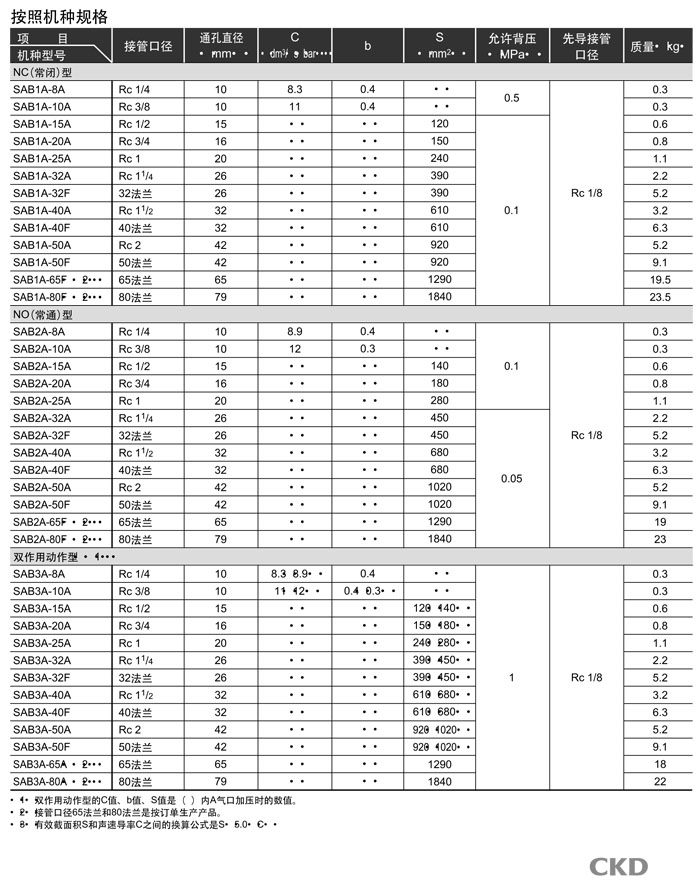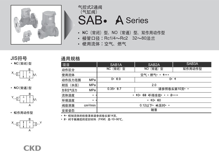 SAB1A-8A,SAB1A-10A,SAB1A-15A,SAB1A-20A,SAB1A-25A,SAB1A-32A,SAB1A-32F,SAB1A-40A,SAB1A-65,CKD氣控式2通閥