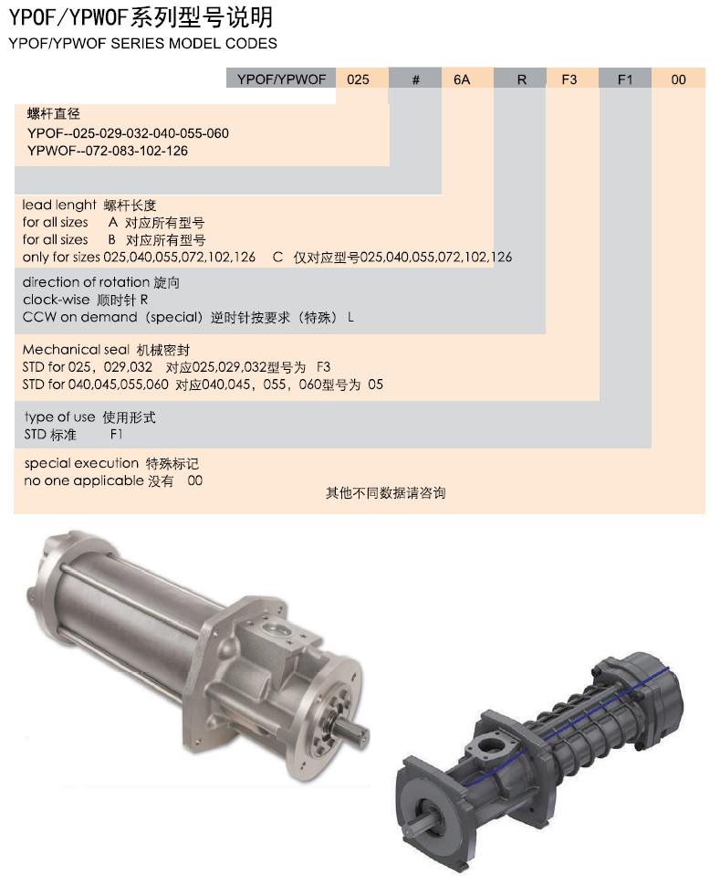 YPOF025,YPOF032,YPOF040,YPOF055,YPOF060,YPWOW072,YPWOW083,三螺桿泵