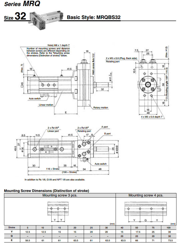 MRQBS32-5,MRQBS40-5,MRQFS32-5,MRQFS40-5,MRQBS32-10,MRQBS40-10,MRQFS32-10,MRQFS40-10,SMC伸擺氣缸
