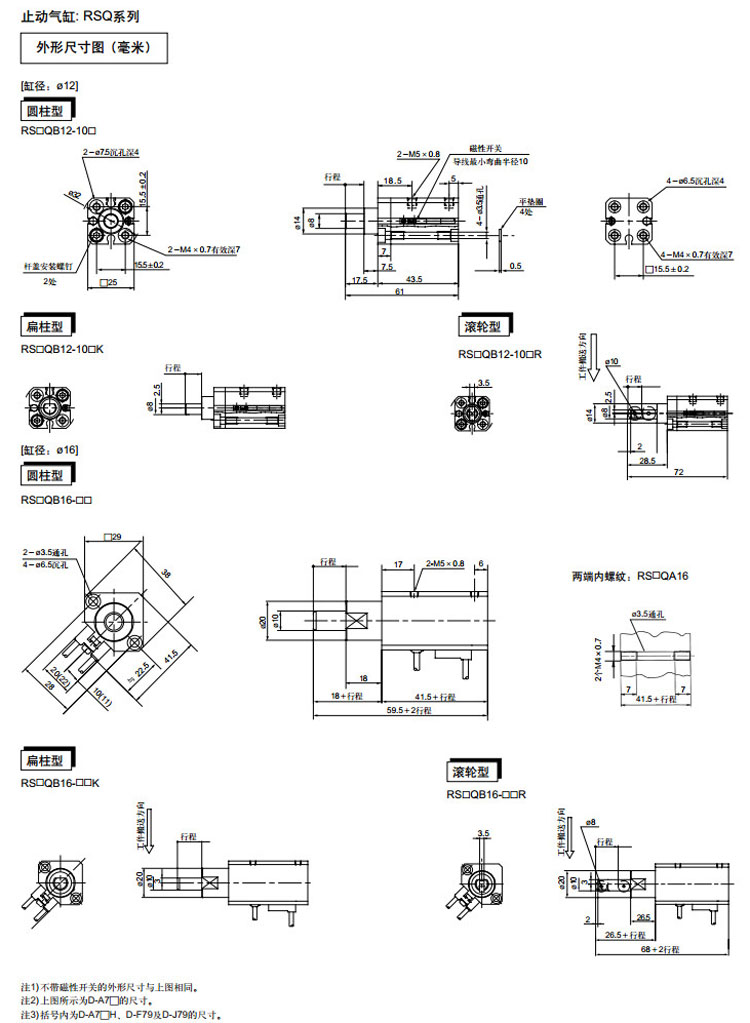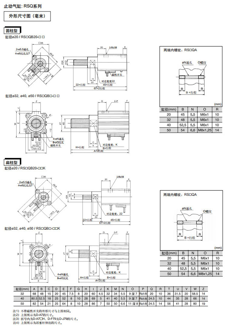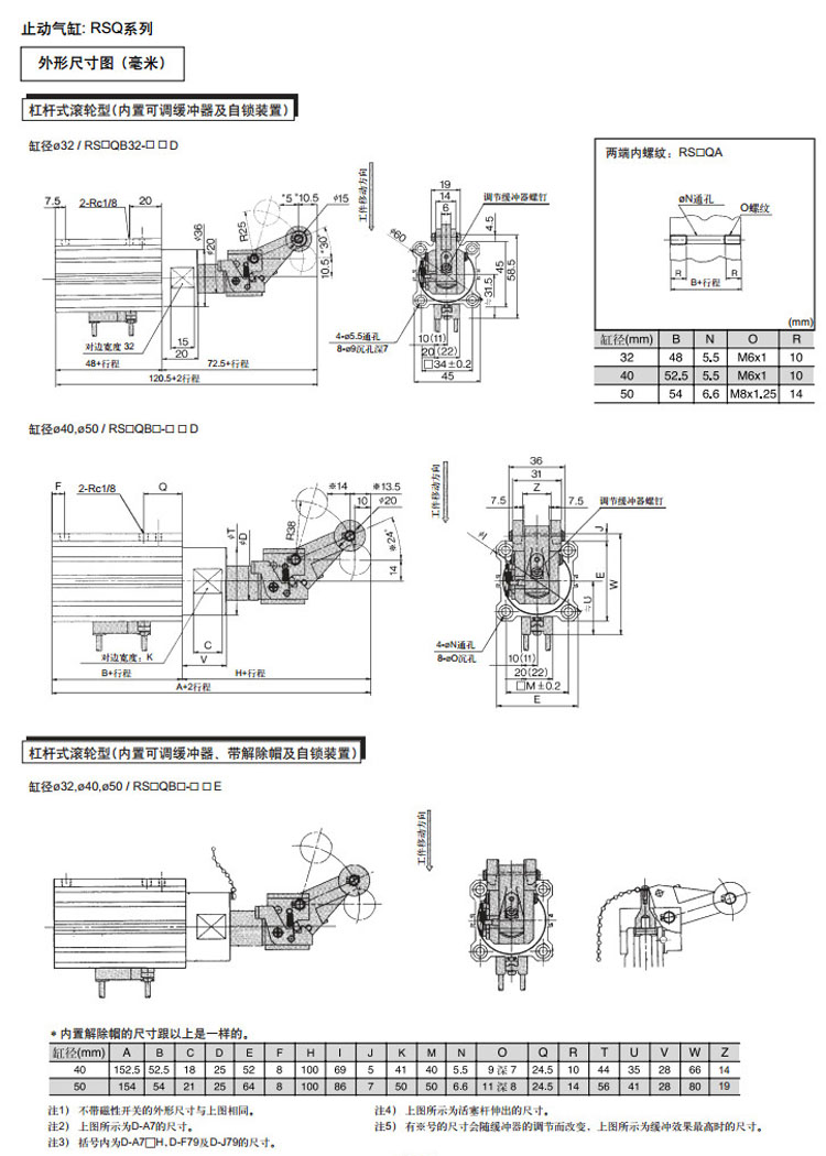 RSQB12,RSQB16,RSQB20,RSQB32,RSQB40,RSQB50,RSQA12,RSQA16,RSQA20,RSQA32,RSQA40,RSQA50,SMC止動氣缸