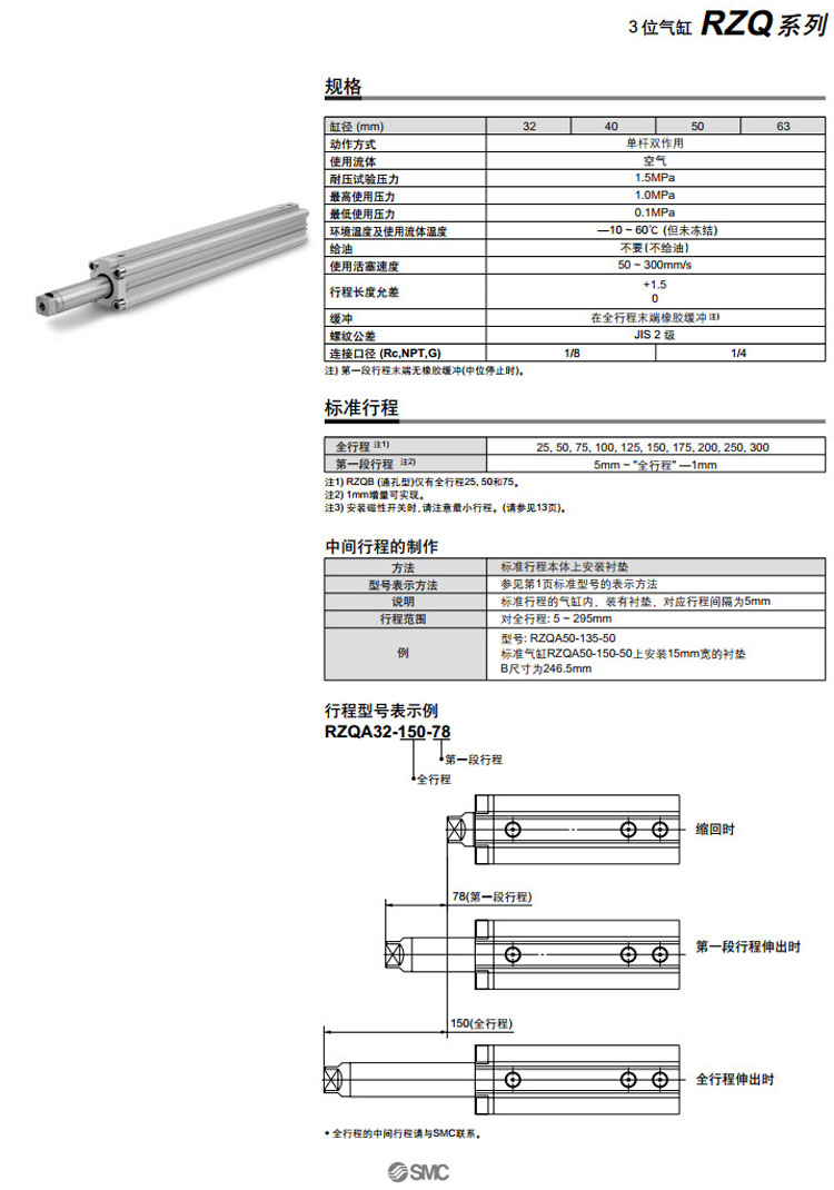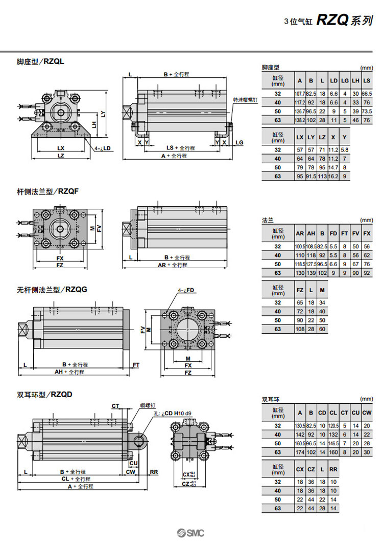 RZQA32-25,RZQB32-25,RZQL32-25,RZQF32-25,RZQG32-25,RZQD32-25,SMC3位氣缸