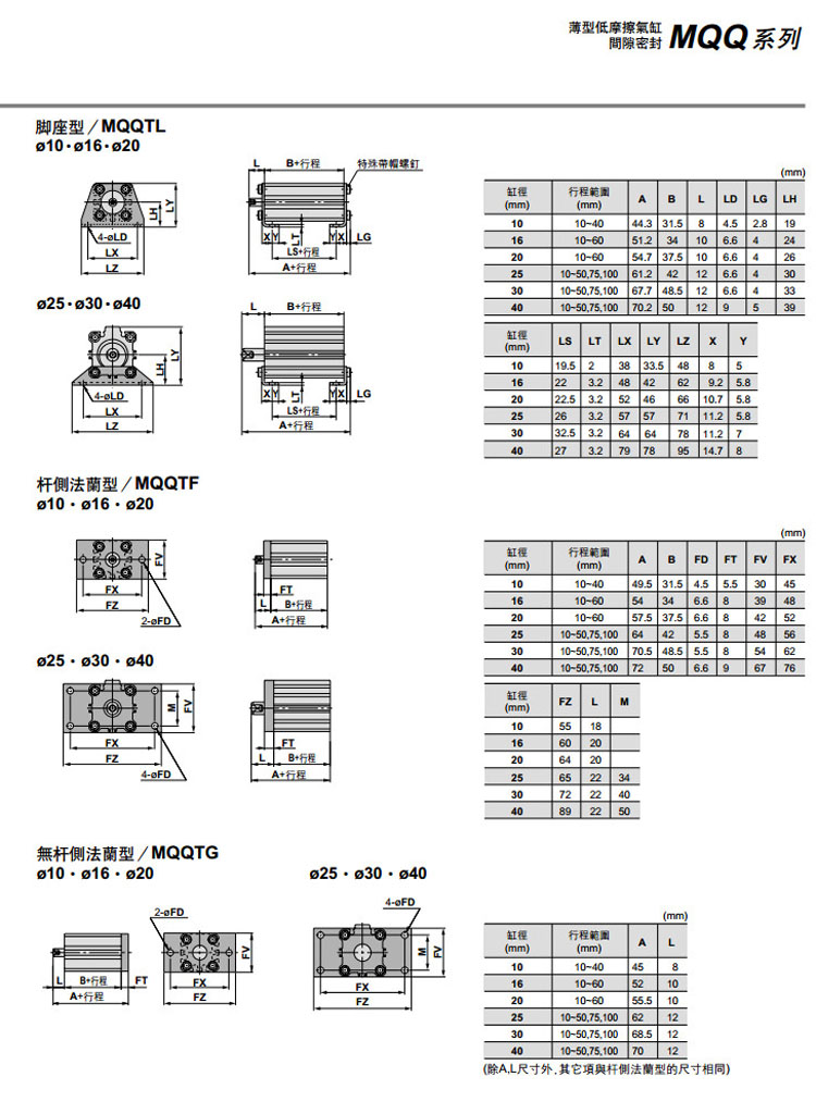 MQQLB10-10D,MQQLL10-10D,MQQLF10-10D,MQQLG10-10D,MQQLD10-10D,SMC低摩擦氣缸