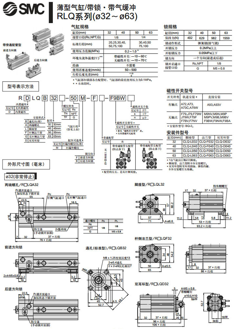 RDLQB32-20,RDLQA32-20,RDLQL32-20,RDLQF32-20,RDLQG32-20,RDLQD32-20,RDLQB32-25,SMC薄型氣缸