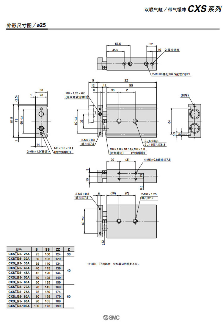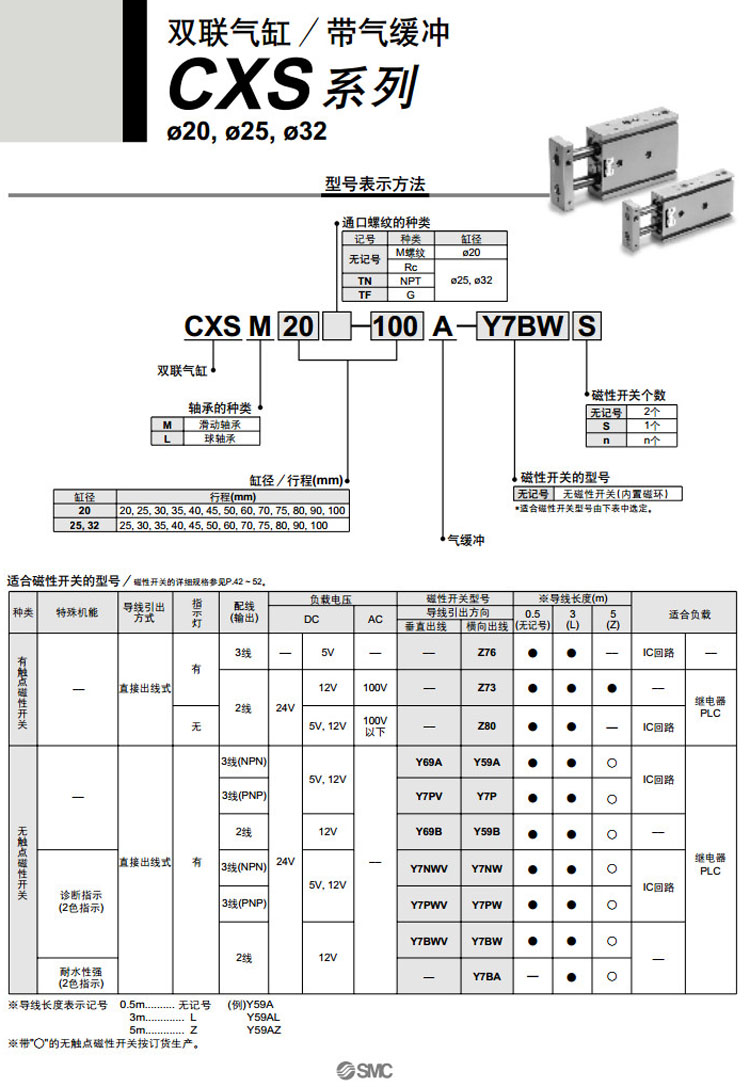 CXSM20-20A,CXSM25-25A,CXSM32-25A,CXSM20-25A,CXSM25-30A,CXSM32-30A,SMC雙聯(lián)氣缸