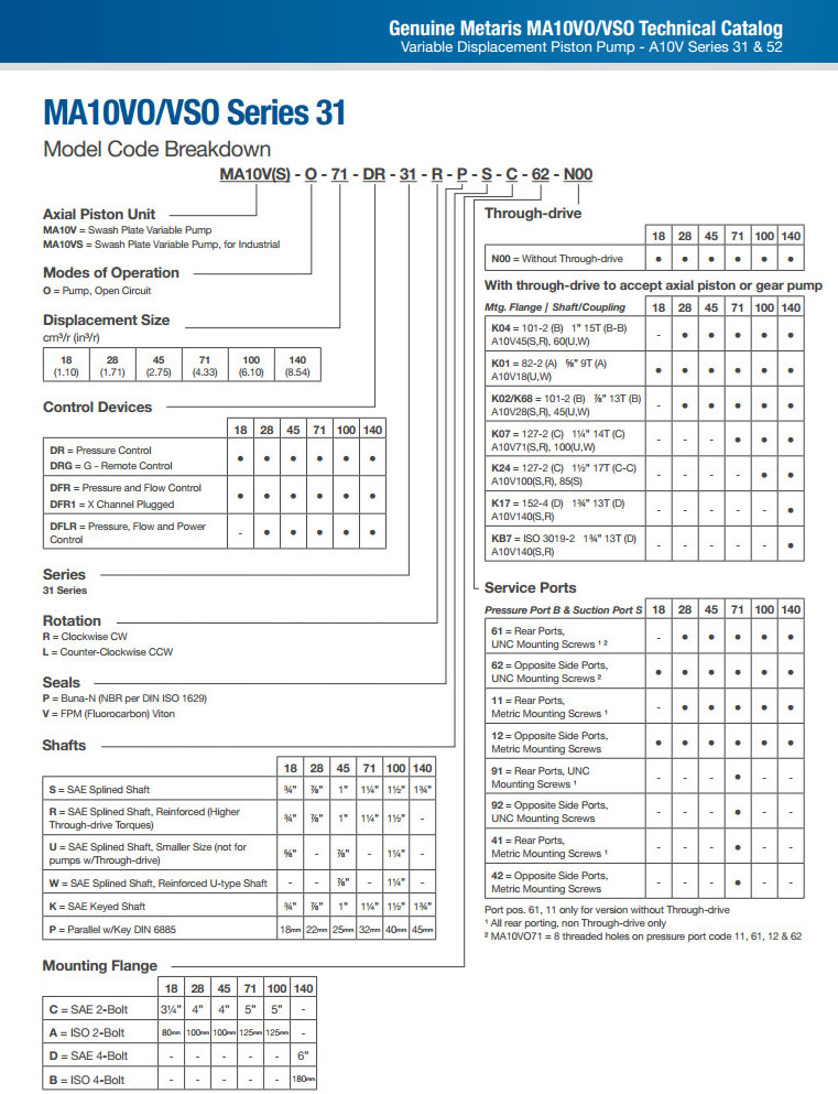 MA10VO-18,MA10VO-28,MA10VO-45,MA10VO-71,MA10VO-100,MA10VO-140,Metaris柱塞泵