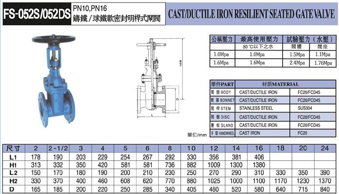 FS-052S,FS-052DS,軟密封暗桿式閘閥
