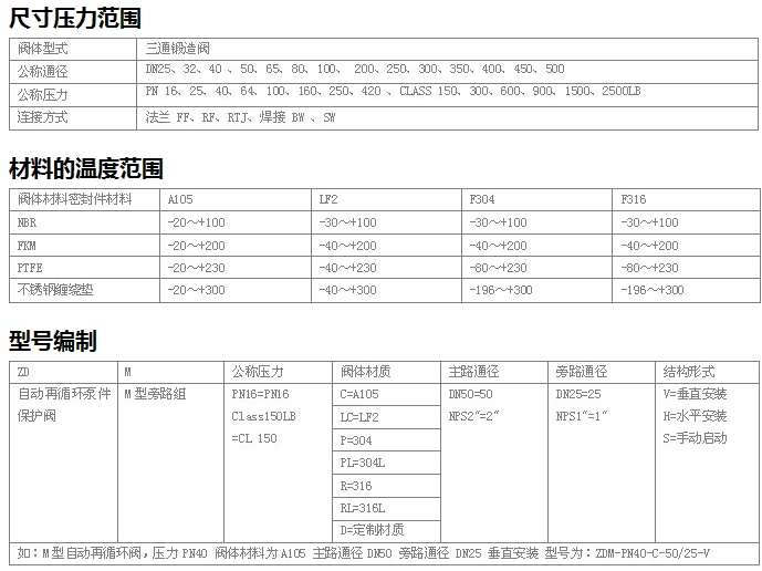 ZDM系列自動(dòng)循環(huán)泵保護(hù)閥是一種泵保護(hù)裝置。它自動(dòng)對(duì)離心泵(尤其輸送熱水介質(zhì))在低負(fù)荷運(yùn)行時(shí)泵體內(nèi)可能出現(xiàn)的部分氣蝕損害和不穩(wěn)定進(jìn)行保護(hù)。一旦泵流量低于預(yù)設(shè)流量,旁路完全打開以確保泵所需最小流量。即使主路完全關(guān)閉,即主路流量為零,最小流量也可以通過(guò)旁路進(jìn)行自動(dòng)循環(huán)。壓力通過(guò)旁路中的集成多級(jí)節(jié)流減壓閥降低。ZDM系列有適合高壓差的旁路,壓差最大至30MPa,具體選擇由工廠確定。多級(jí)減壓式的M型旁通可消除高速流動(dòng)介質(zhì)產(chǎn)生的噪音,防止氣蝕和閃蒸對(duì)閥門元件的破壞。