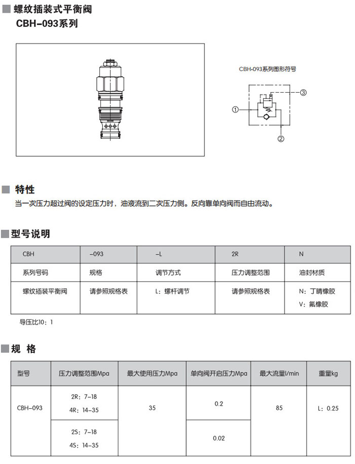 CBH-093-L2RN,CBH-093-L4RN,CBH-093-L2SN,CBH-093-L4SN,CBH-093-L2RV,CBH-093-L4RV,螺紋插裝式平衡閥