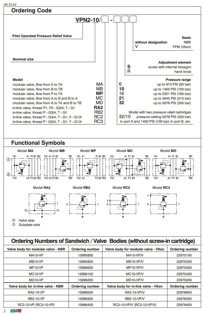 VPN2-10/MA-6,VPN2-10/MB-6,VPN2-10/MP-6,VPN2-10/MC-6,VPN2-10/MD-6,VPN2-10/RA2-6,ARGO先導式泄壓閥