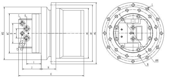 本產(chǎn)品為馬達與減速機一體的行走裝置。由集成于減速機內(nèi)部的雙排量軸向柱塞馬達、行走減速器組成。馬達內(nèi)置安全閥、防反轉(zhuǎn)閥、停車制動裝置及高低二檔轉(zhuǎn)換裝置,它的特點是:傳動比范圍大、結(jié)構(gòu)緊湊、工作效率高、可靠性強、體積小、運動平穩(wěn)、噪音低等,同時具有多級安全保護、使用壽命長等優(yōu)點。適用于液壓履帶驅(qū)動行走裝置。